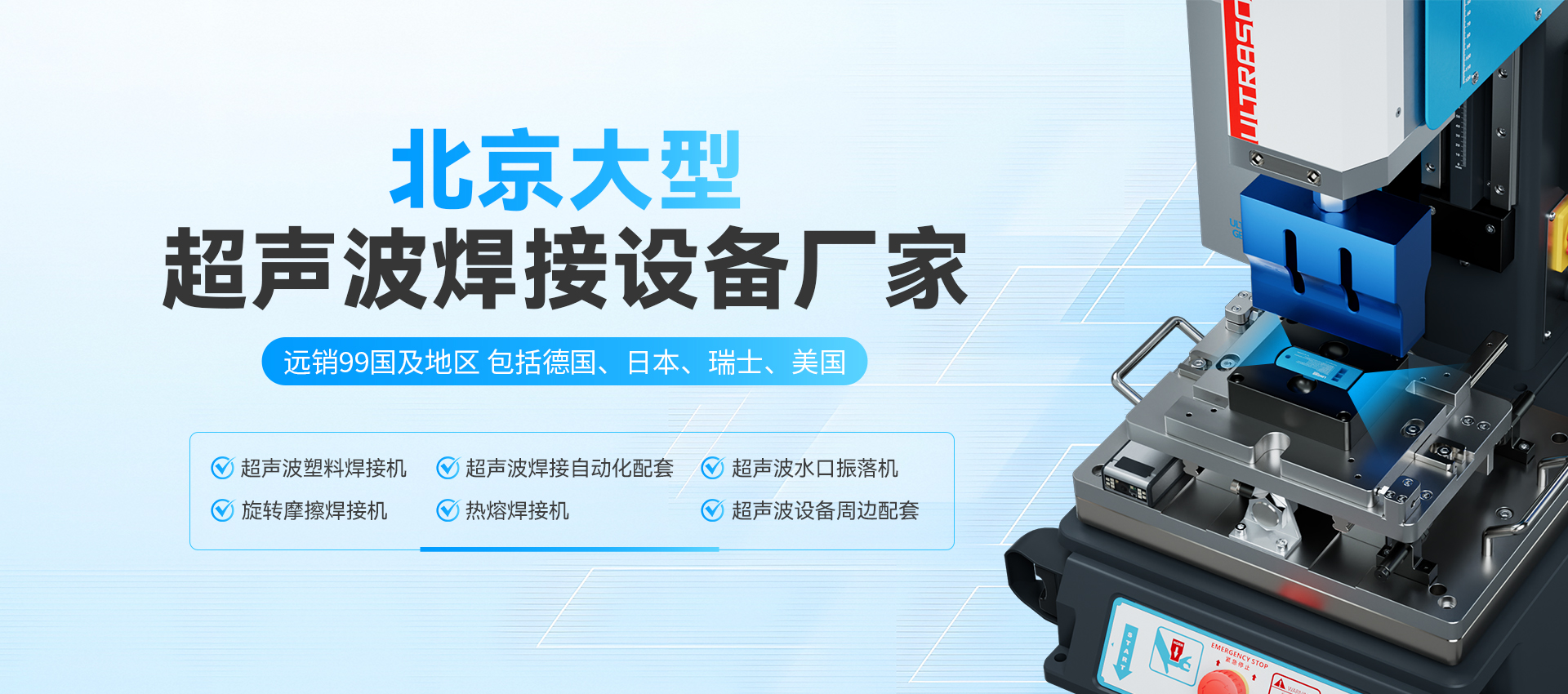 北京正宏尼可技術有限公司是一家從事,生產、銷售、服務為一體的,現代化技術企業,公司主要開發(fā)生產各種:超聲波塑料焊接設備、塑料熱熔設備、高頻熱合設備、各種濾芯焊接設備、汽車內飾件焊接設備,塑料多點熱鉚機,塑料熱板機、塑膠旋熔機、震動摩擦焊等設備。